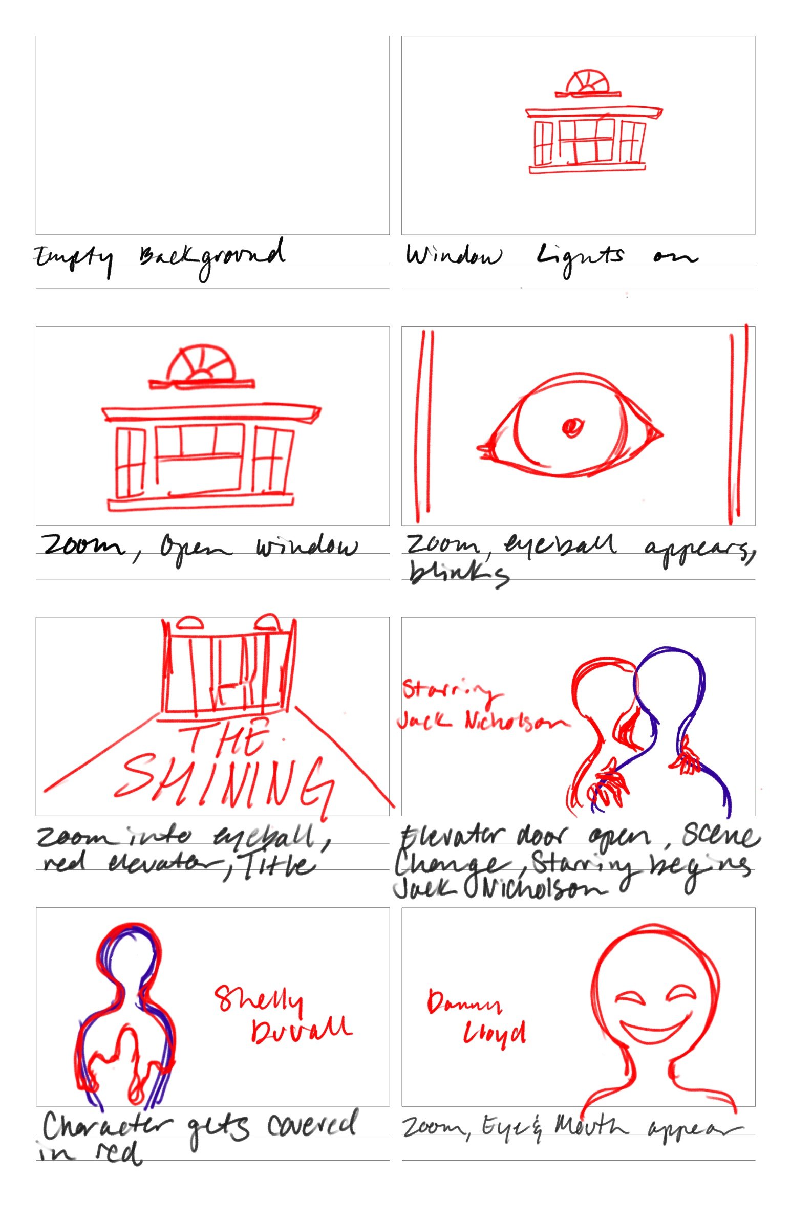 The sequence focuses on bold illustrations inspired by Saul Bass's minimalist approach and powerful imagery. The use of color contrast helps create an unsettling atmosphere of the film's psychological aspect. The sequence includes key scenes, characters, and objects from the film.
